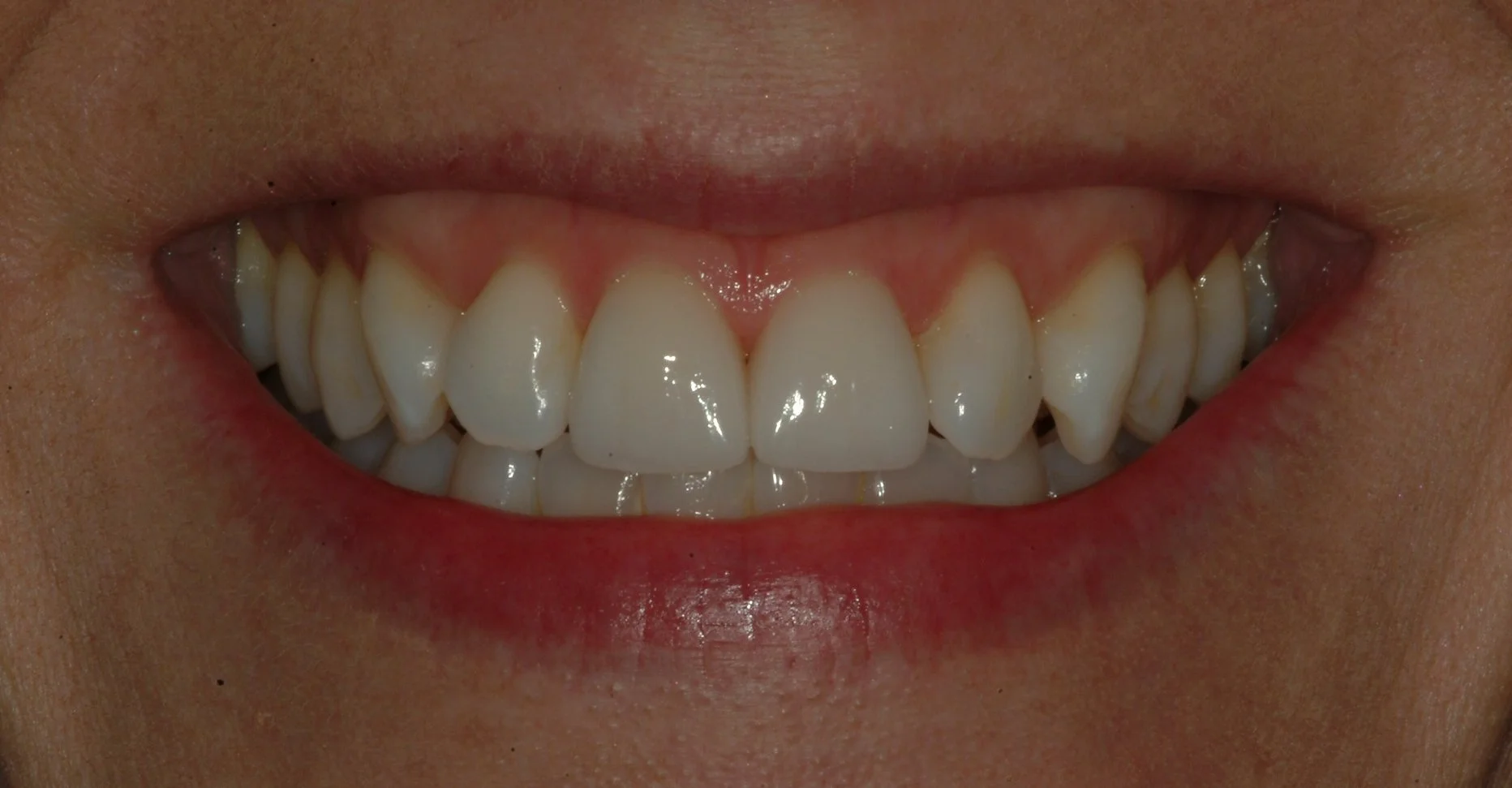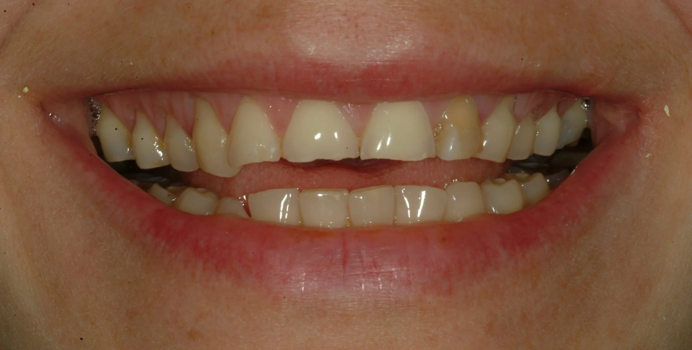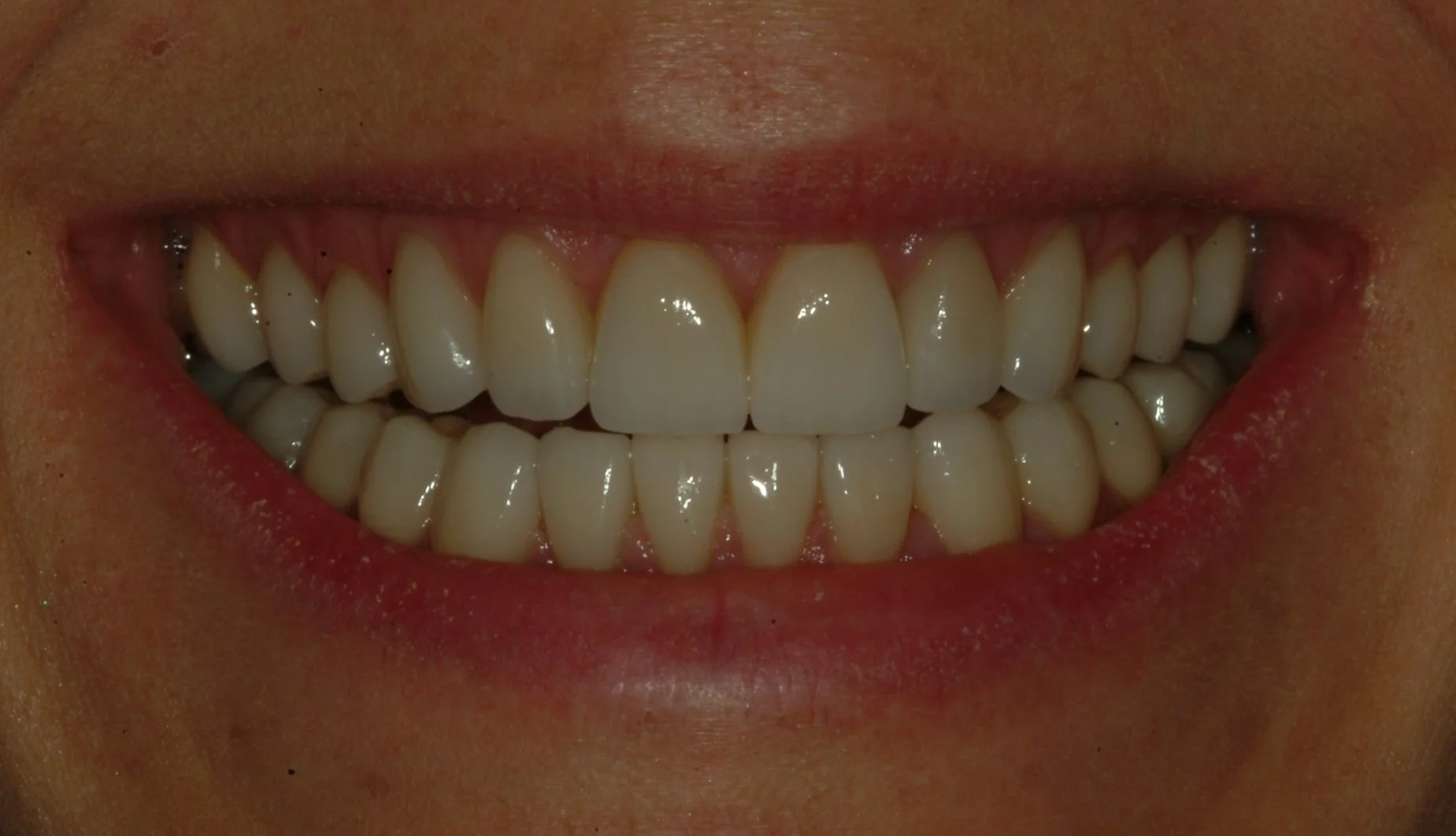 23-årig kvinna som ville jämna ut framtänderna med porslinsfasader. Vi gjorde fyra fasader på framtänderna.