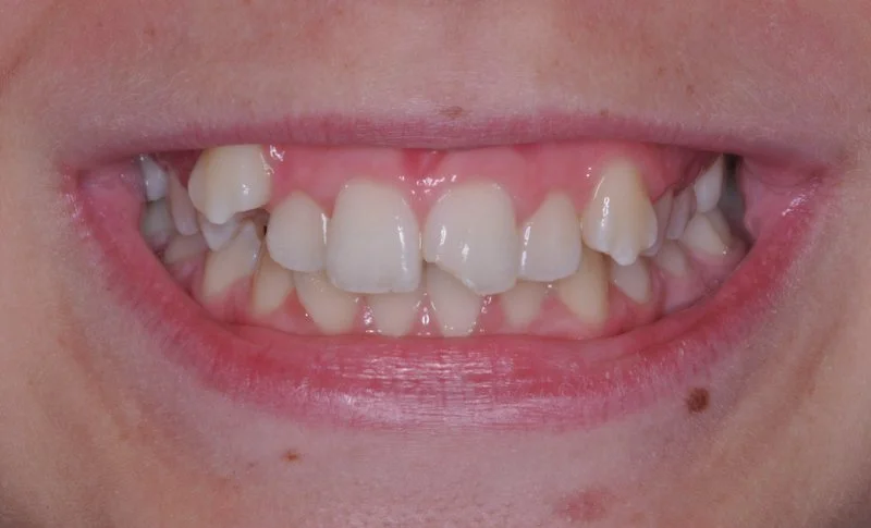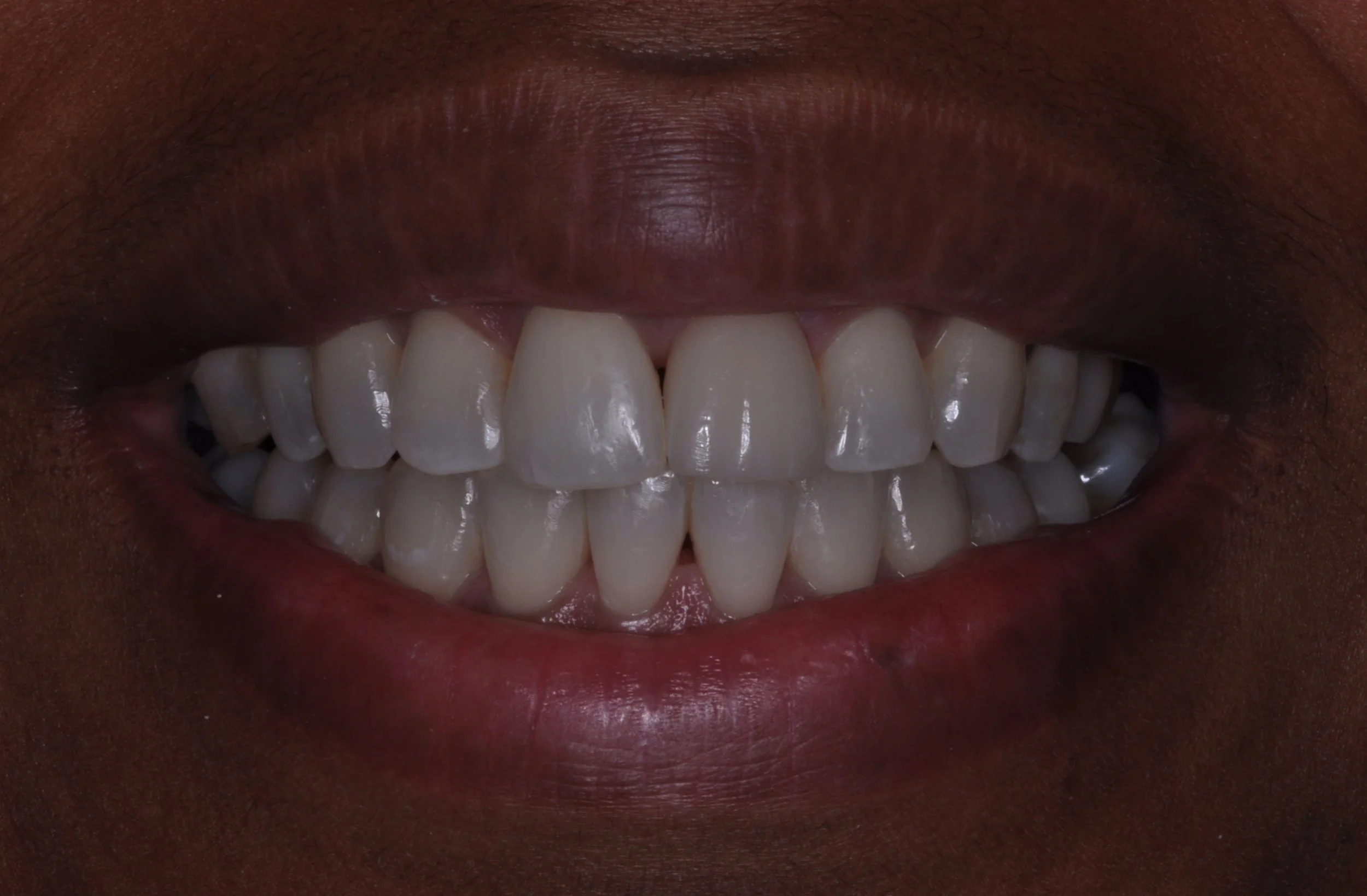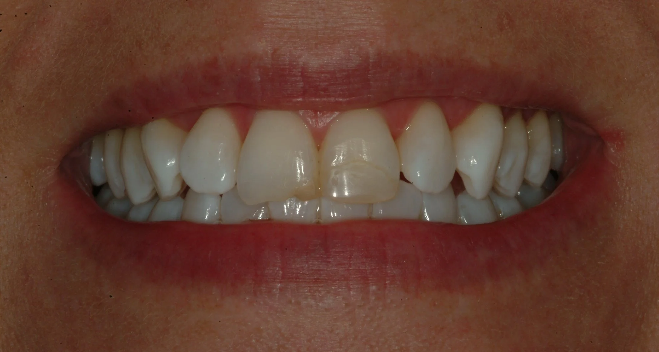 23-årig kvinna som ville jämna ut framtänderna med porslinsfasader. Vi gjorde fyra fasader på framtänderna.